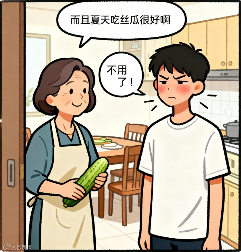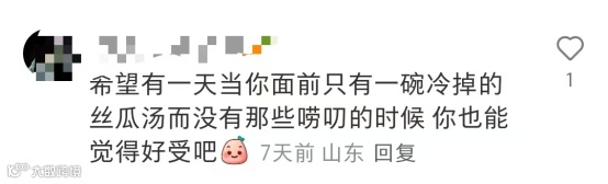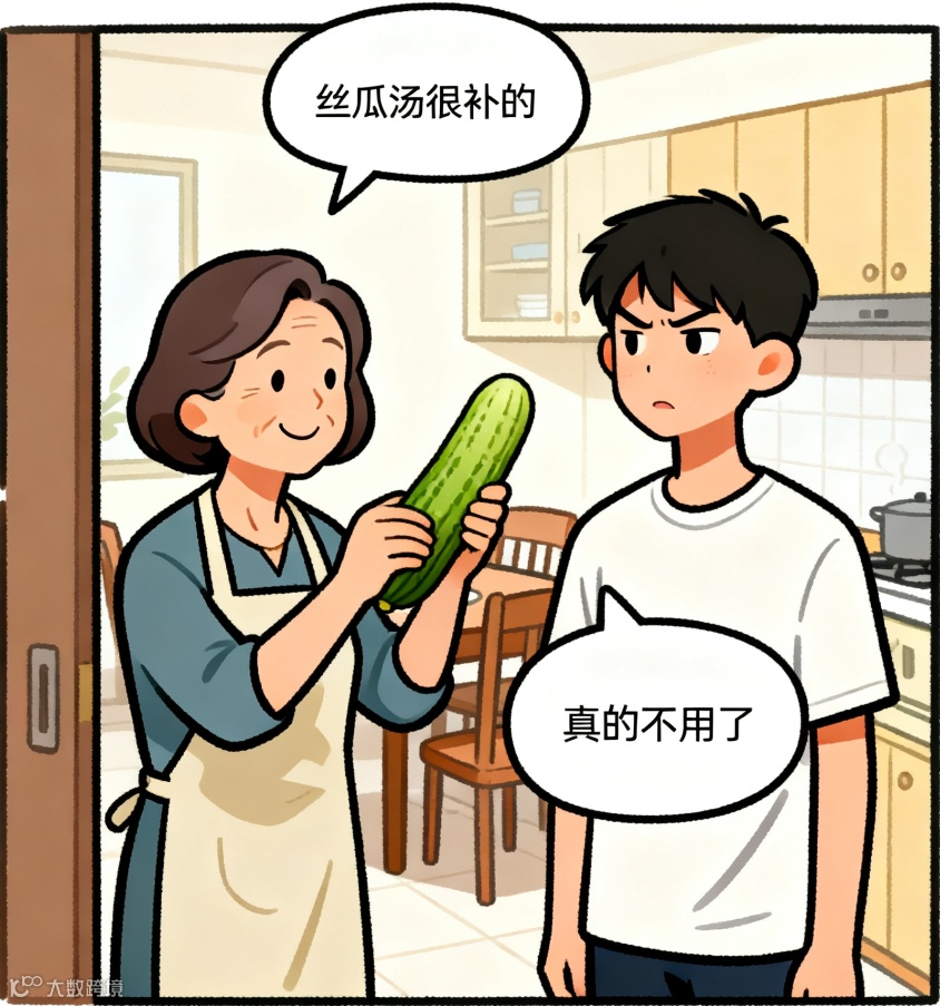 但丝瓜汤让人痛苦的点是,无论你说什么,做什么,他们都会用更多的理由强迫你接受,哪怕是你无奈地接受了,可能后面还会再补一句:“别光喝这个了,也多吃肉。”