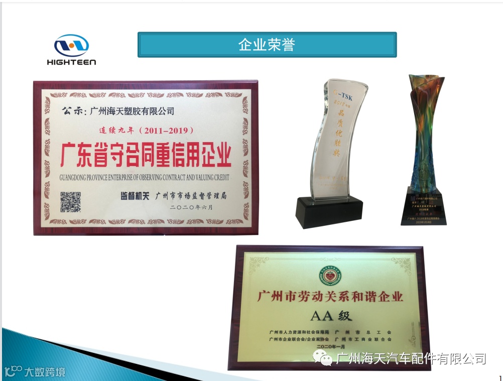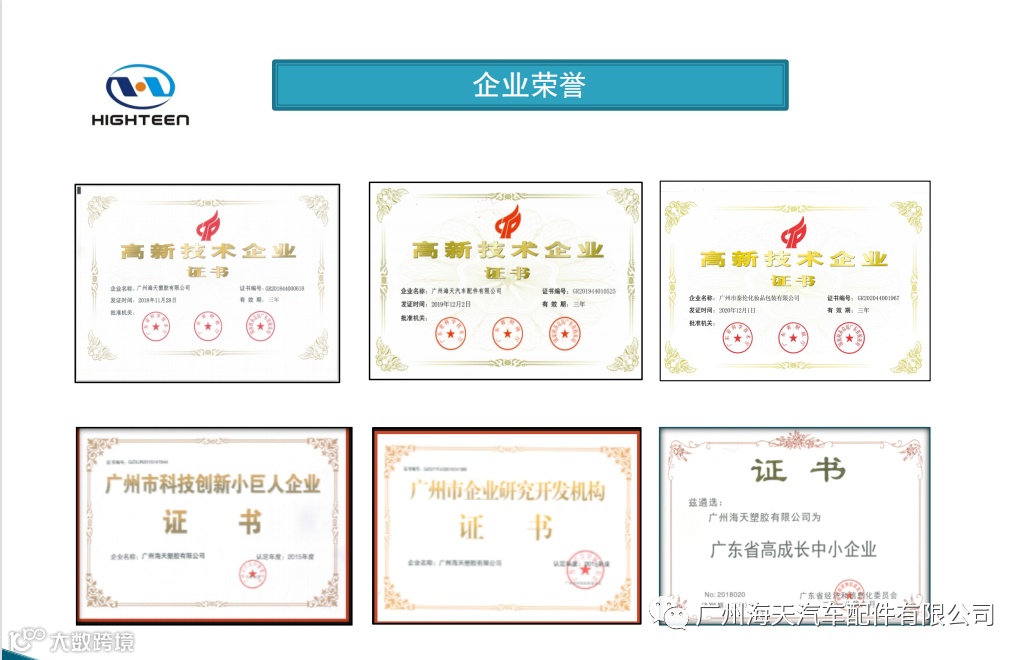 海天从2001年做家电塑料制品的小工厂到今天拥有员工近700名,厂房面积30000多平方米,座落于花都汽车城及赤坭镇为中心的两大生产制造基地,我们风雨走来已发展成一家专业从事汽车内外饰件、电子产品和模具设计加工、成型及表面处理的中大型现代化企业。