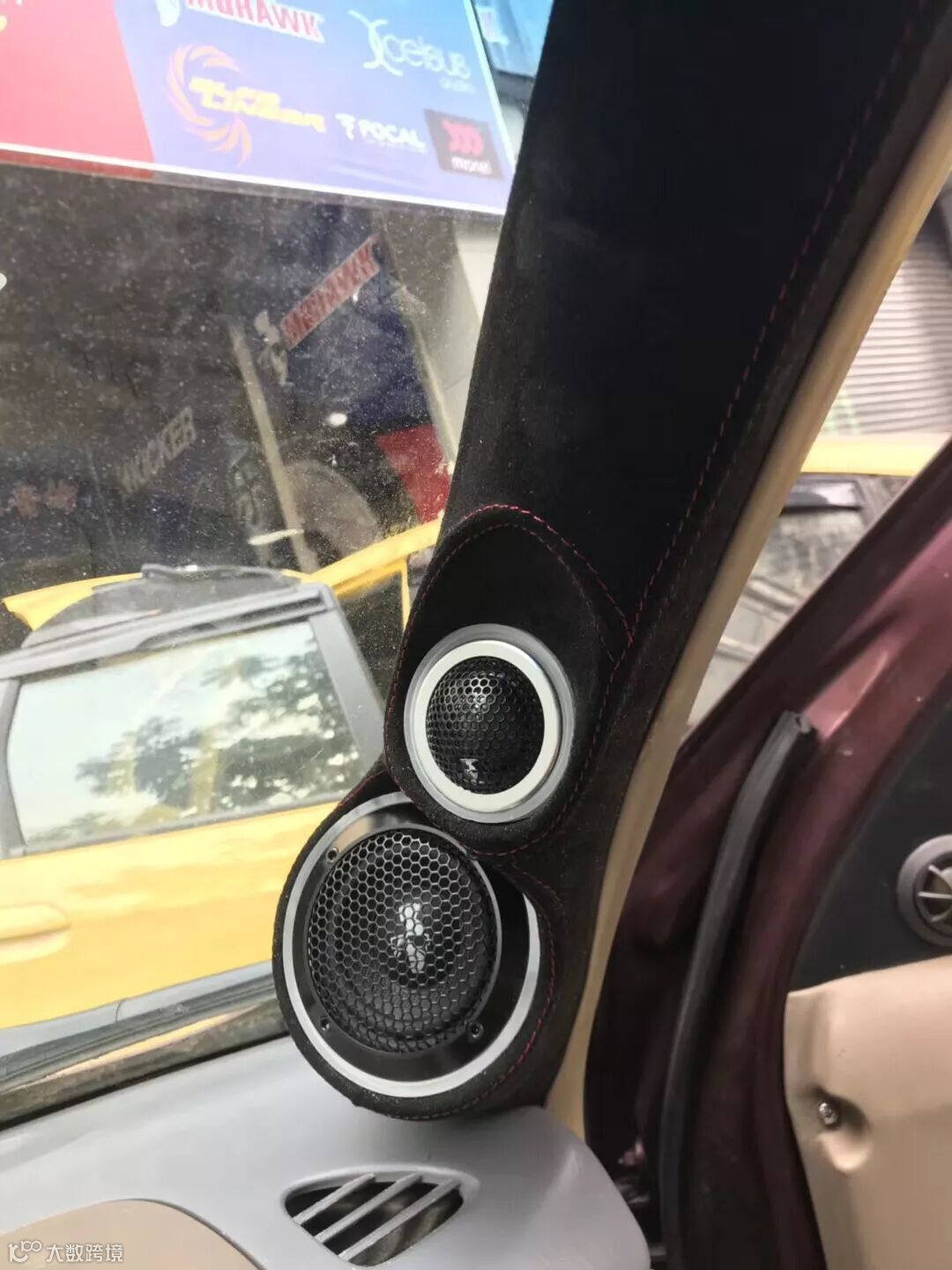 前声场是美国豪客MP6.3三分频套装,豪客中音和高音倒模安装在A柱和门板三角位,倒模其实对技师的工艺要求是很高的,这个不但涉及到声场的定位,增加声场的深度和宽阔度,还涉及到整个流线造型对于整个车内饰的搭配程度,而造型则考验的是技师的美感。