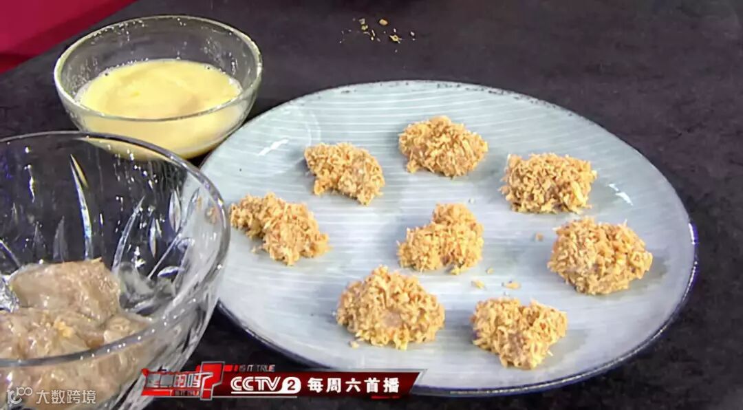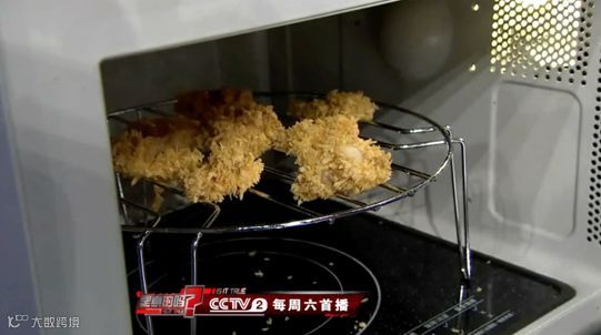 把腌制好的鸡肉裹上鸡蛋液,再蘸上面包糠,在烧烤架上刷上油,把鸡肉放进微波炉,高火加热3分钟后端出。