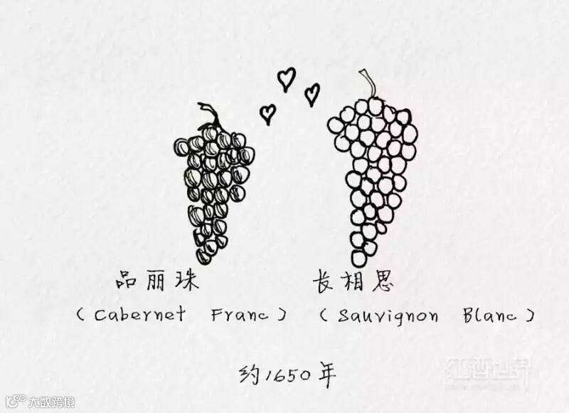 号称波尔多之王的赤霞珠(Cabernet Sauvignon)诞生,它是由品丽珠(Cabernet Franc)和长相思(Sauvignon Blanc)自然杂交而成。