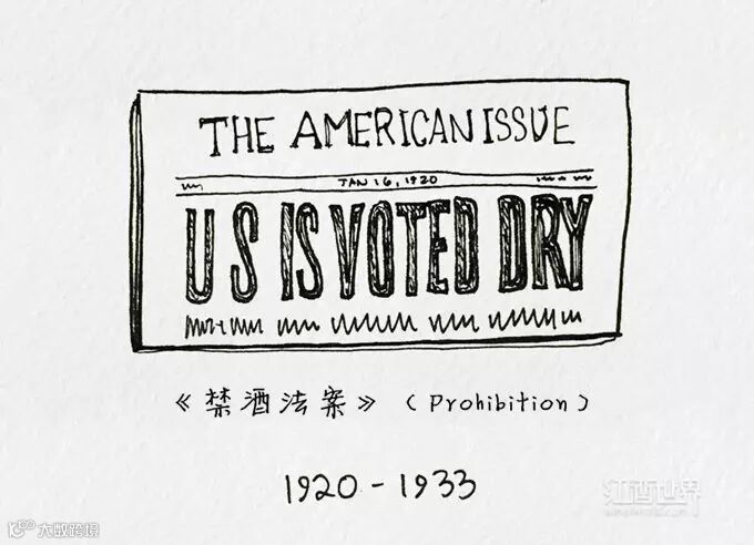 美国全面实行《禁酒法案》(Prohibition),美国葡萄酒业受到严重的打击。
