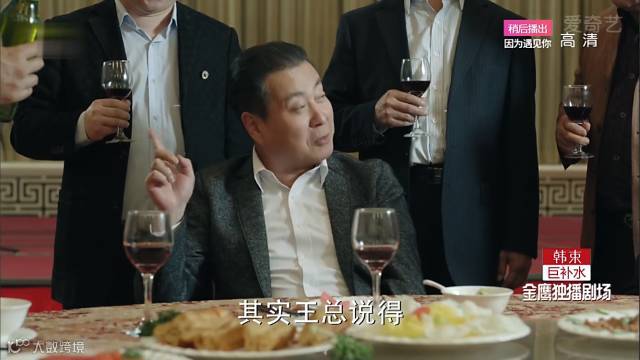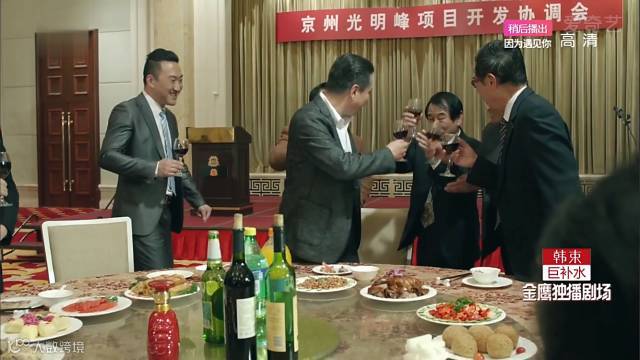 小知识:这里丁义珍拿的香槟颜色几乎透明,香槟可以通过滤色提高透明度,但这种透明度的香槟几乎不存在,剧组应该用的饮料代替。