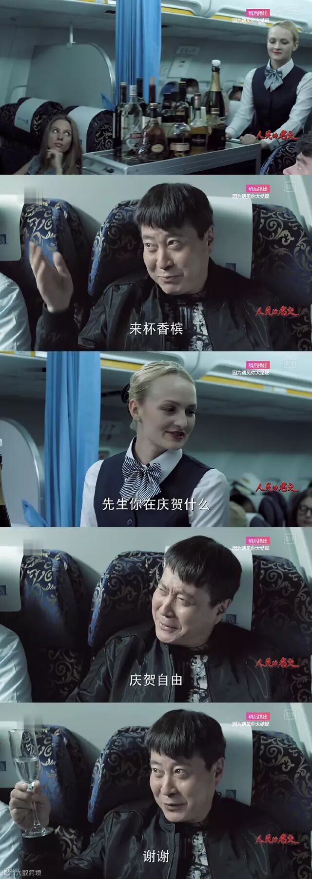 为了庆祝没被抓,跟空姐要了杯香槟