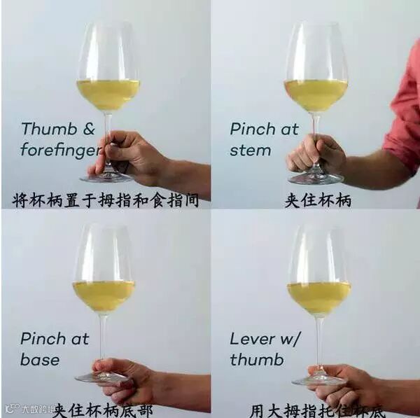 正确的拿酒杯的姿势: