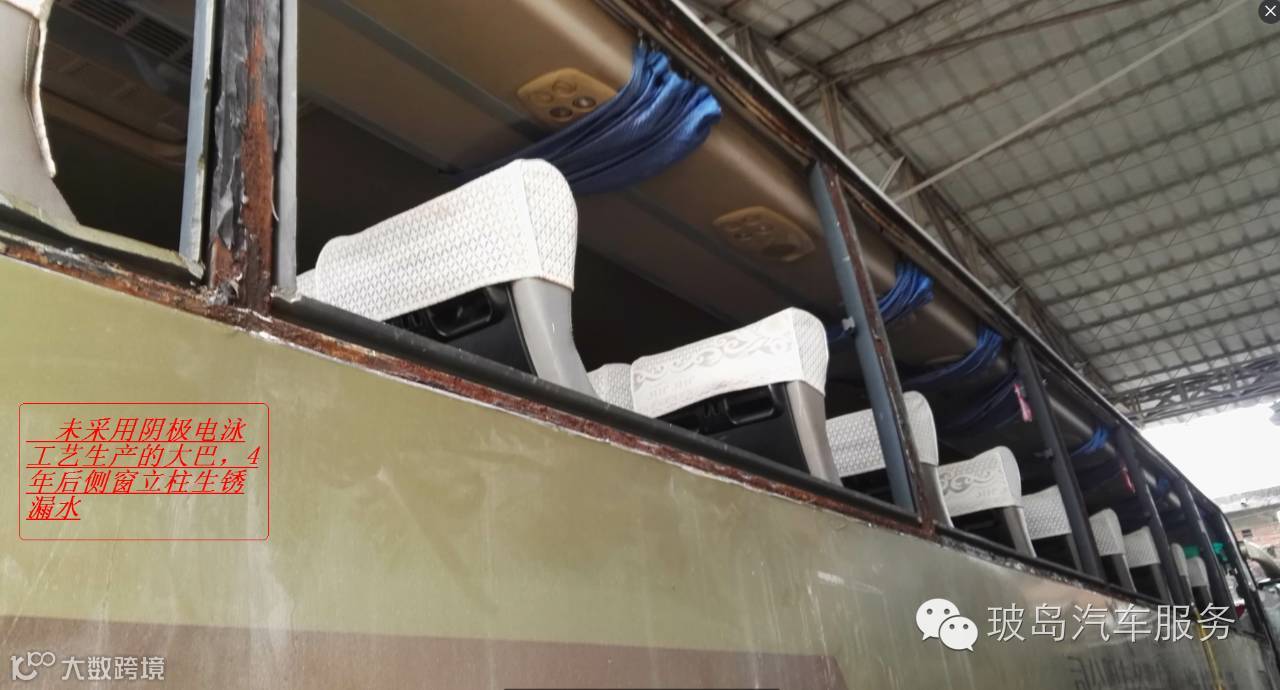 车身制造采用阴极电泳工艺,完全可以保证大巴7-8年不发生生锈现象,但阴极电泳工艺投资巨大,生产直接成本也高,小批量、间歇式的大巴生产成本则更高,大巴生产厂家为了最求更高的利润和较低的竞争价格的需要,牺牲了大巴用户的利益。