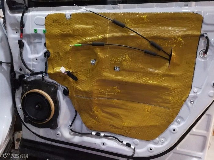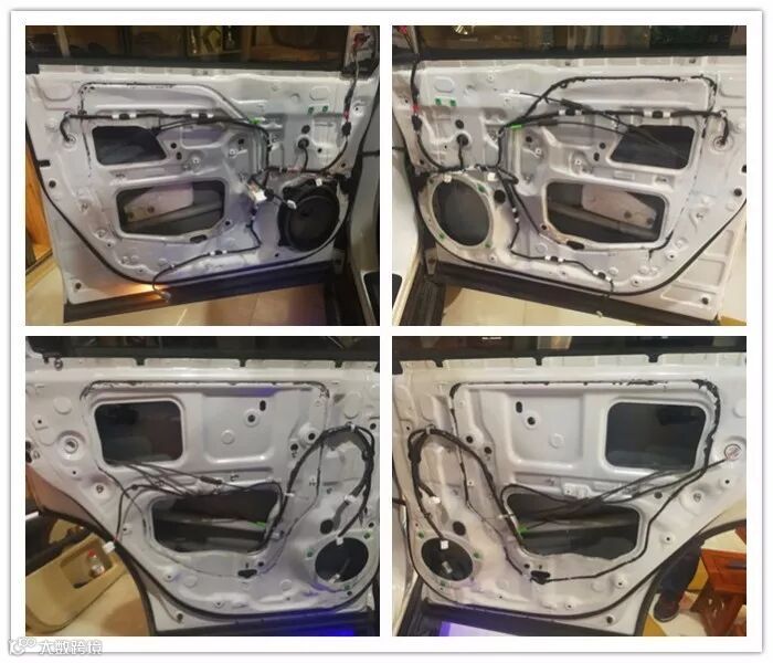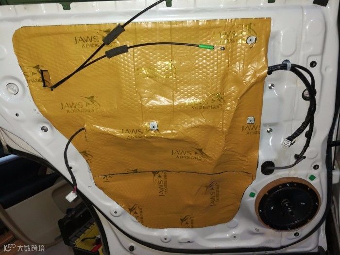 原车车门拆开,你会发现没有做任何的隔音处理,可想而知如果在这样的塑料隔音下怎么能好好的欣赏音乐呢,所以升级隔音也是势在必行。店家给首先给四门选用了大白鲨隔音