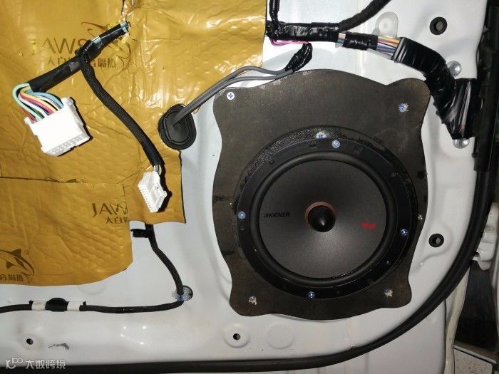 前声场安装的是美国KICKER KS 红色系列高品质两分频套装喇叭KSS6704
