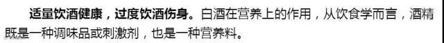 核心提示:适量饮酒健康,过度饮酒伤身。白酒在营养上的作用,从饮食学而言,酒精既是一种调味品或刺激剂,也是一种营养料。