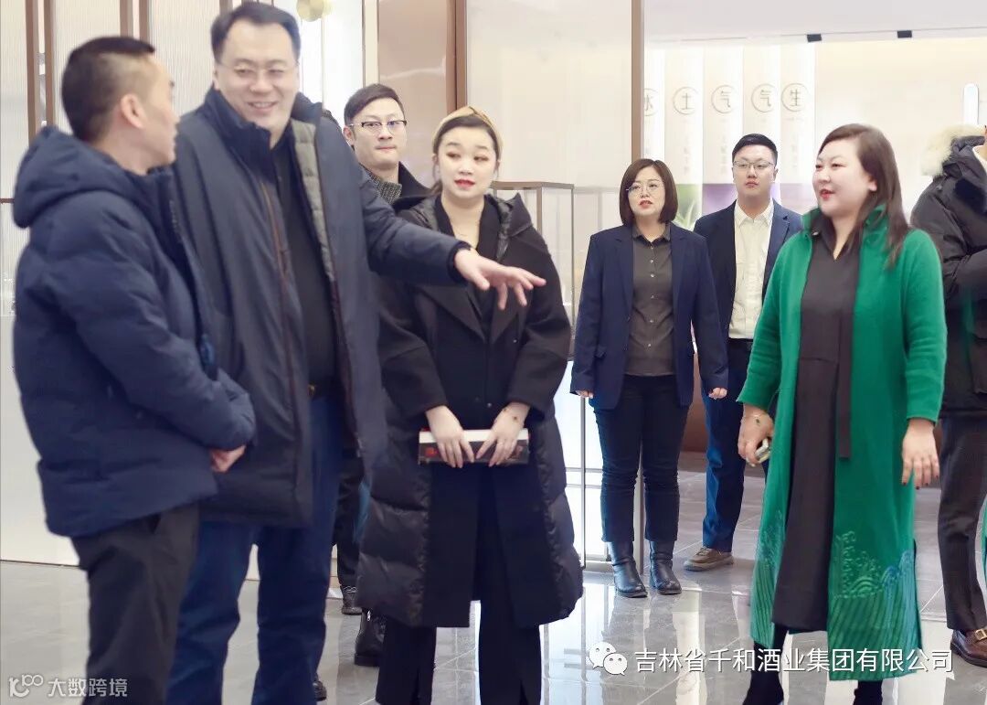 2023年2月15日,华致酒行总裁李伟、华致酒行助理总裁曹雪一行莅临千和酒业集团,千和酒业集团董事长葛艳华携全体员工热情接待。李伟总裁在葛艳华董事长、李颖财务总监等千和众员工的陪同下,参观了位于千和酒业集团一层的华致酒行(长春)旗舰店。
