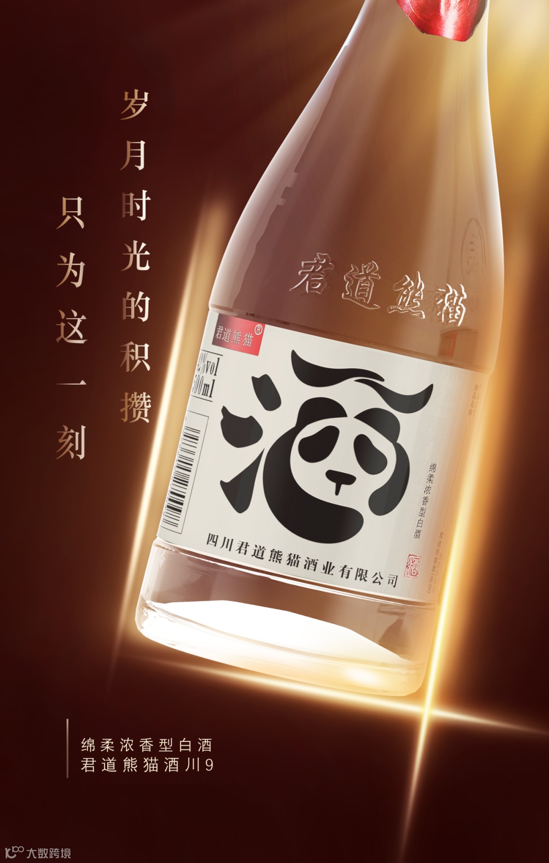 君道熊猫酒在包装设计上大胆创新,以国宝大熊猫作为品牌主题,将传统文化与现代审美巧妙融合。大熊猫作为中国的国宝,深受全世界人民的喜爱,具有极高的辨识度和强大的吸引力,为国宝元素赋予了产品自带流量的特性。瓶身采用自主版权的开模专用瓶,选用 500g 高白料玻璃,用料扎实,质感强烈,相较于同类产品,更显高端大气。标签采用特种纸,纯粮徽章采用金箔纸烫金,细节之处彰显品质。整体包装简洁大方又不失时尚感,既展现了四川特色,又符合当下消费者对个性化、时尚化产品的追求,在众多白酒产品中脱颖而出,成为消费者眼中的焦点。