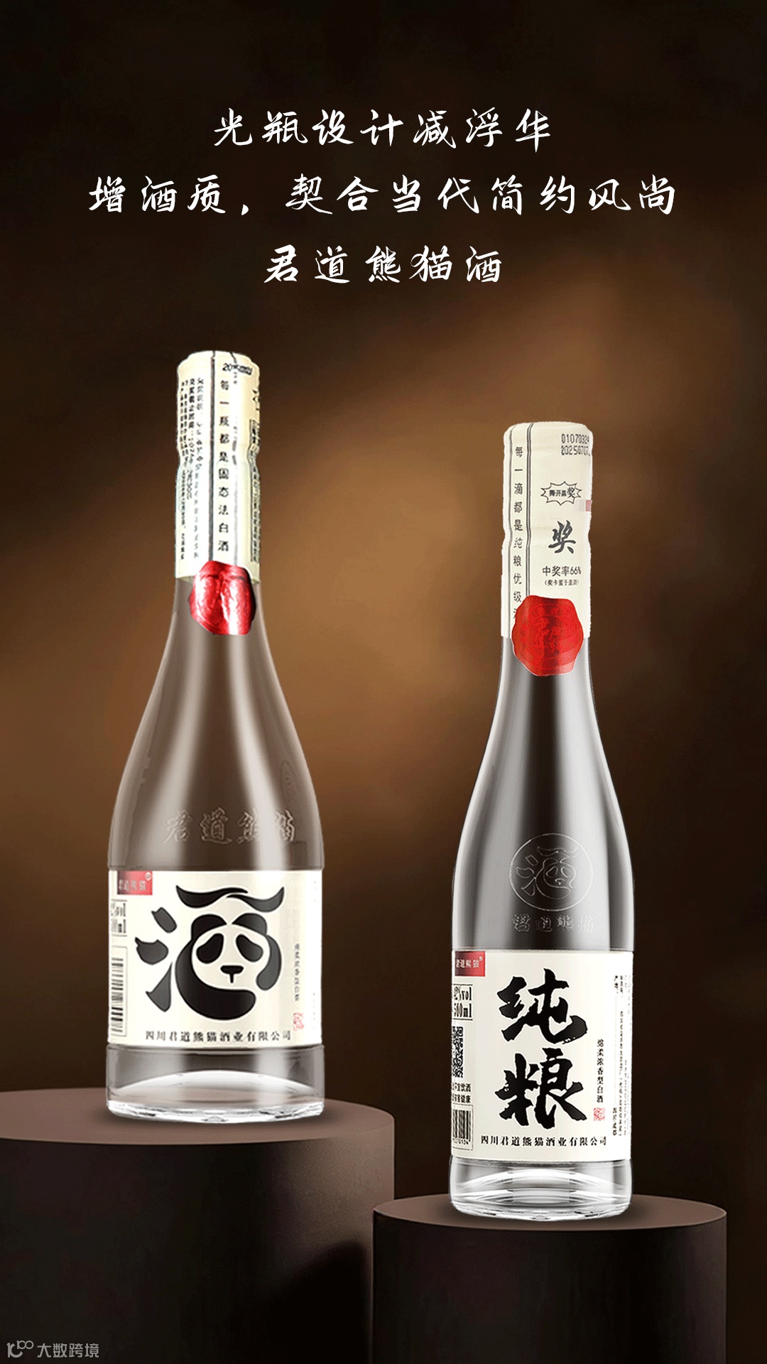 在遍地都是精致包装的时代,极简的“光瓶”反而成了一种特立独行的风格。君道熊猫酒坦诚地展示着它的产品信息,没有任何冗余设计,这种“反颜值”的直球操作,恰恰形成了一种独特的实用主义美学,彰显着消费者的自信与个性——我喝的是什么,一目了然,我的品味,由酒体定义,而非包装。