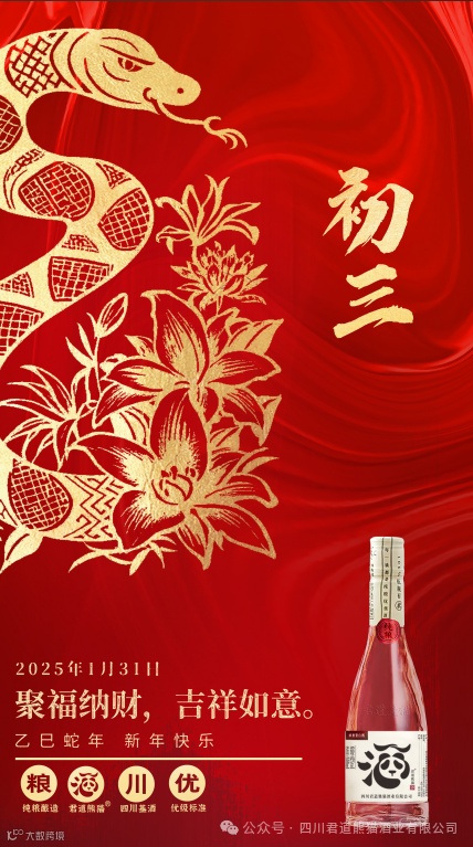 初三小年朝,君道熊猫酒祝您心想事成,万事如意。愿这杯熊猫酒,带给您一年的吉祥和顺,愿您的每一天都如酒般醇厚,如诗般美好。