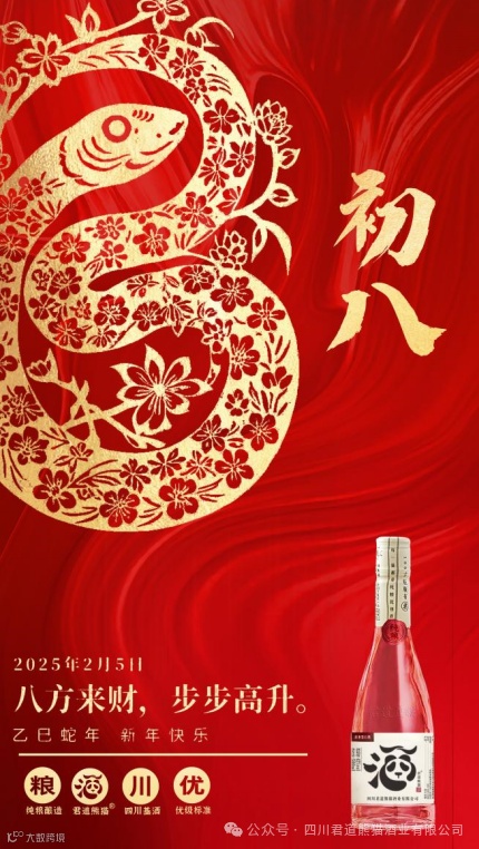 正月初八,君道熊猫祝你: 事业蒸蒸日上,财源滚滚而来! 身体健康,万事如意!阖家幸福,平安喜乐!