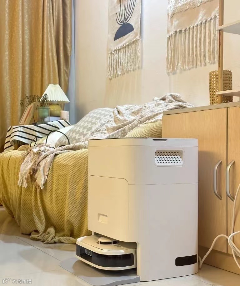 脏了还能自动回机站清洗,除了能自动清洗还带热烘干自动集尘功能!拖完后地干干净净的,拖布也干干净净的。