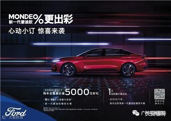 【555元下订活动】礼遇:用户在福特商城蒙迪欧活动页下单,支付555元,购车开票后尊享5000元豪礼(5年/14万公里质保升级)+新一代蒙迪欧车模一个(数量有限,先到先得);