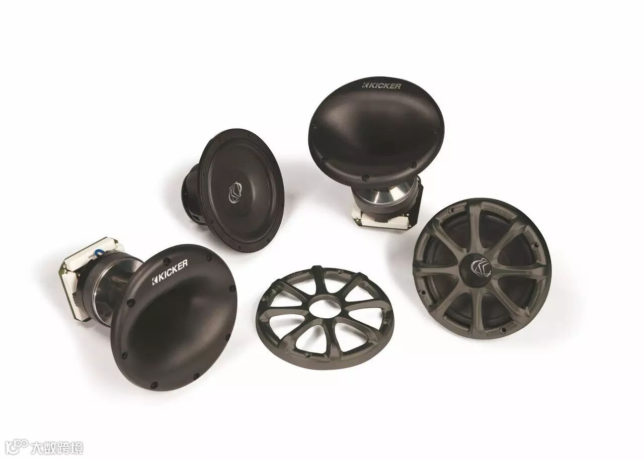 KICKER的船用音响系列,大大的号角高音和套装喇叭