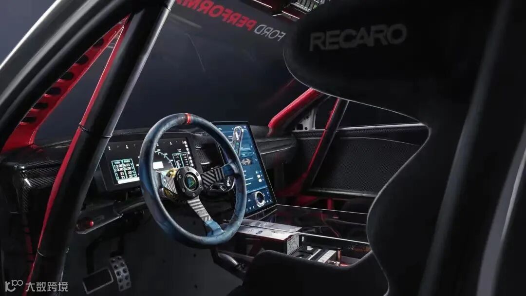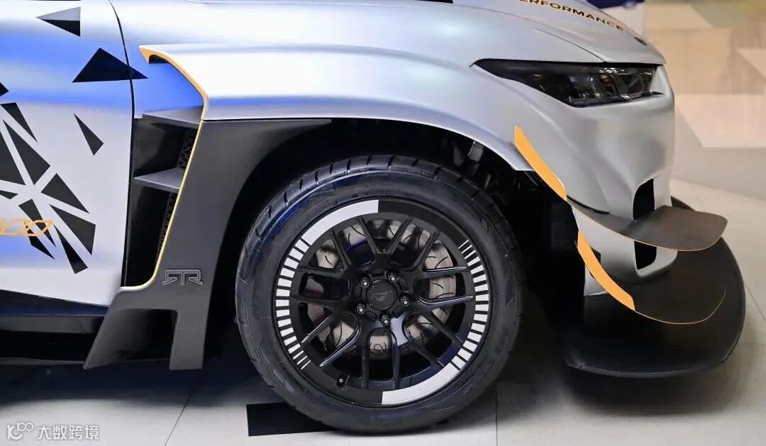 在转向系统方面,前端模块的不同配置增加了Mustang Mach-E1400在漂移和赛道的不同体验感。控制臂与转向变化允许极端的转向角度,使漂移更得劲,更刺激。