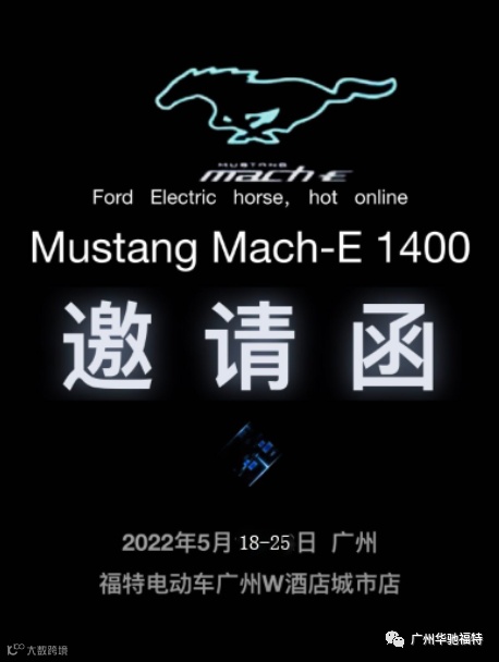 现Mustang Mach-E1400陆地性能“嘤嘤怪”将于18~25号,在广州市天河区冼村路22号101铺福特电动车广州W酒店城市店现身,欢迎大家到店看车!