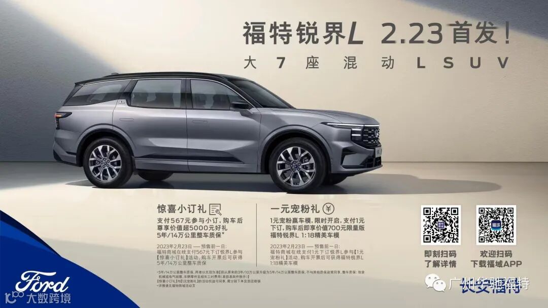 锐界L车型参与小订享超5000元好礼以及5年/14万公里整车质保