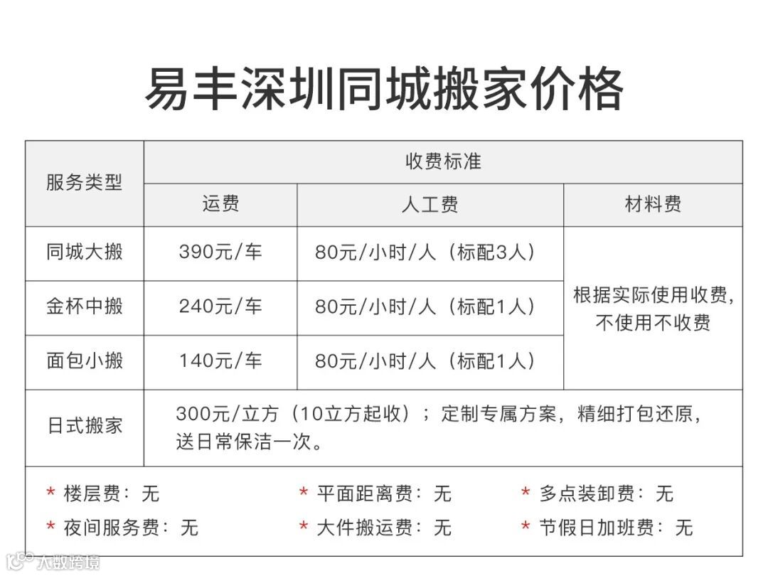 易丰搬家收费体系比较简单,
