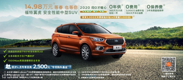 福特商城1元下订,3千元油费补贴,3年免费保养