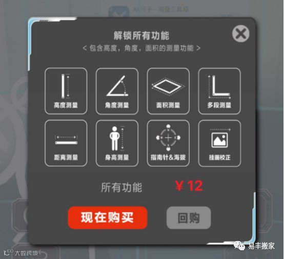 对于物品的高度、面积、角度等测量,需要购买才能解锁功能。