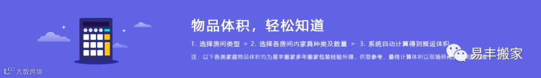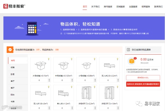 易丰搬家这就出招,教您跨市搬家前快速自助预估体积,快速估算搬家费用。