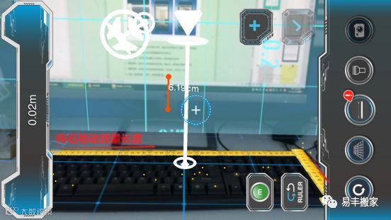 打开AR尺子应用,左右晃动手机,直到手机屏幕中心出现一个十字按钮。