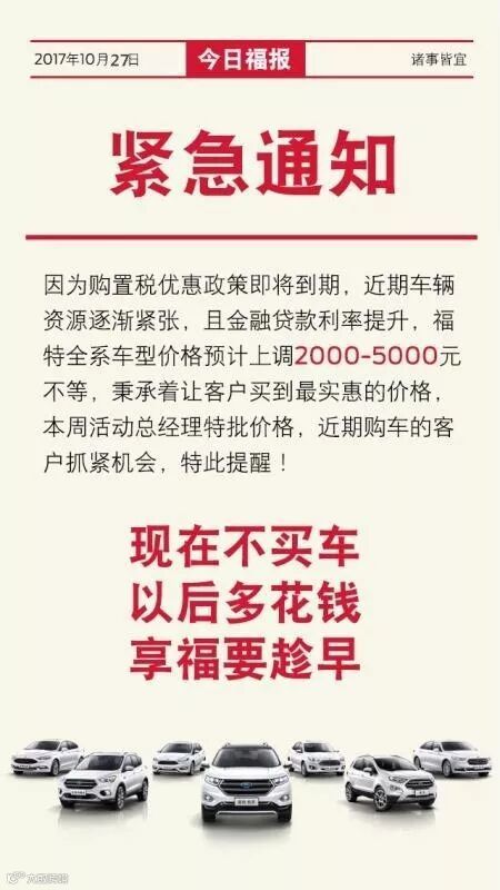 请您尽快赶上购车好时机的末班车!国家政策不等人,车源紧张不等人,克服拖延症,该出手时果断出手!