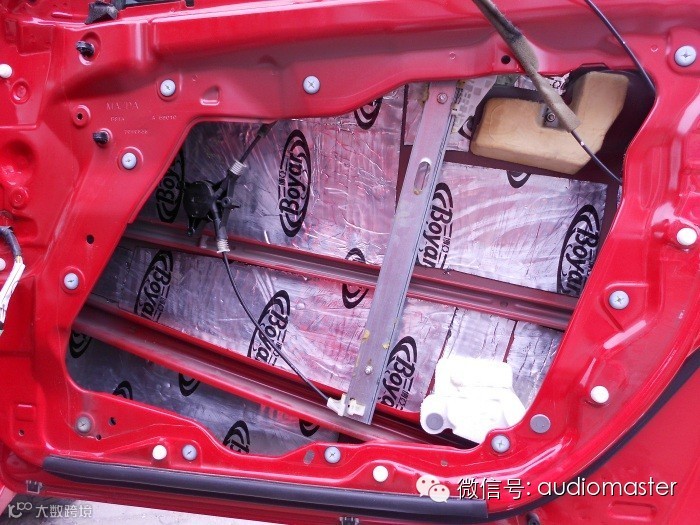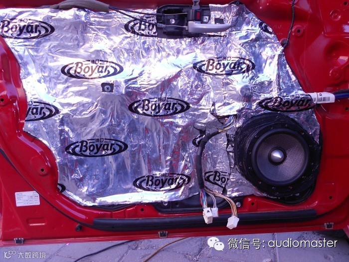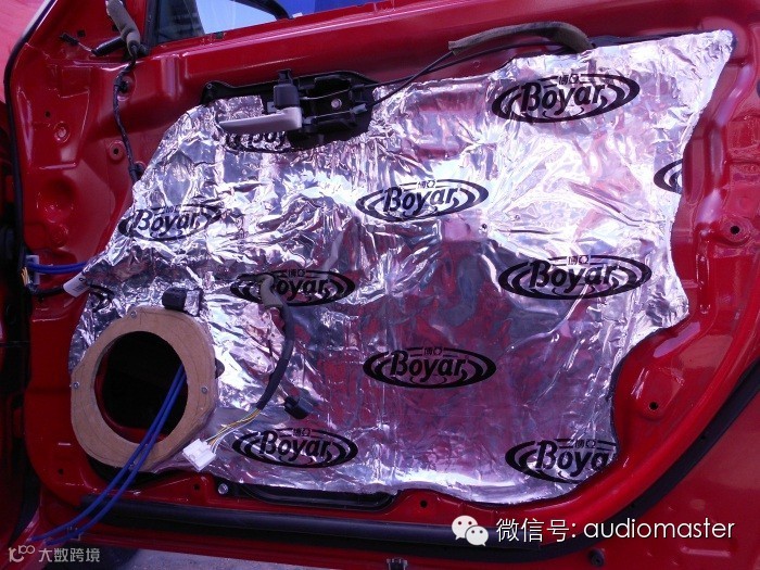 车门第二层隔音,加装木制的喇叭圈垫,用来固定喇叭