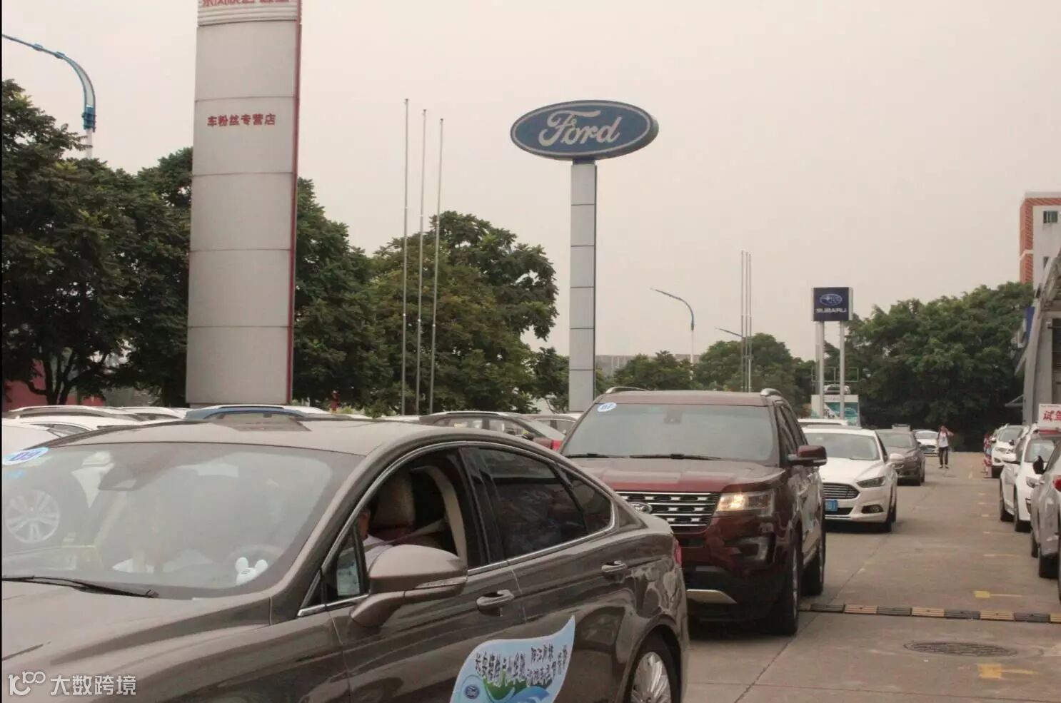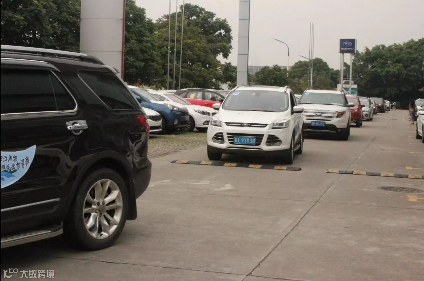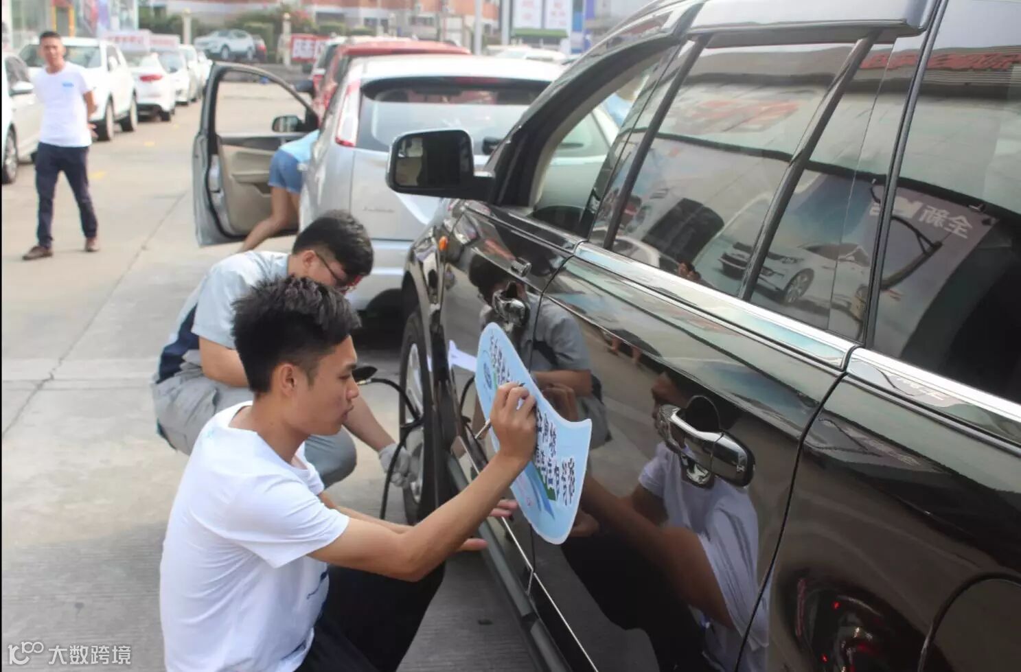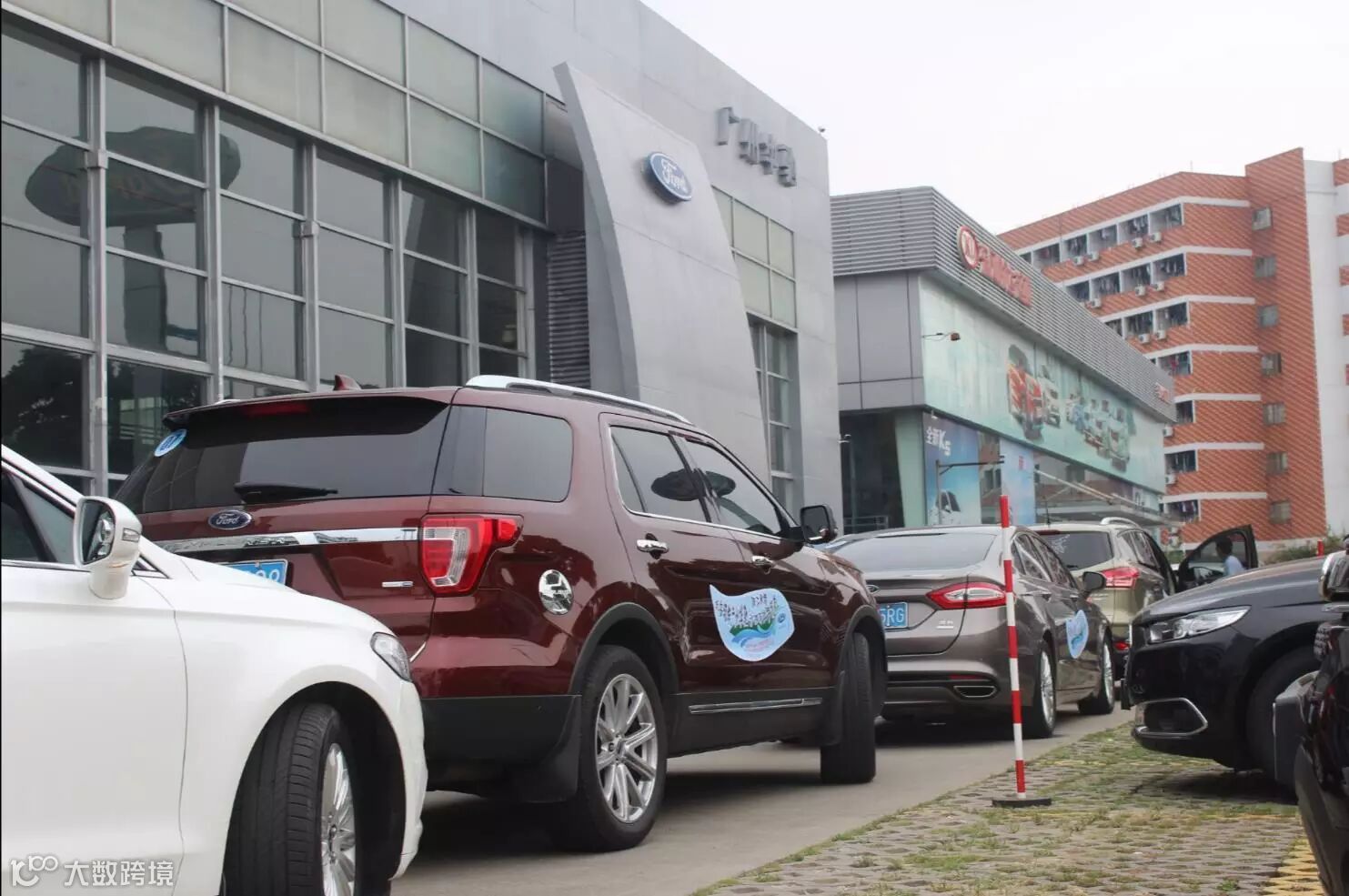 9月24日早上,车主们抵达广州华驰福特,由工作人员贴上车贴,并由售后专业技术师傅检测胎压是否正常,确保安全出游,车主们纷纷换上自驾游统一服装。