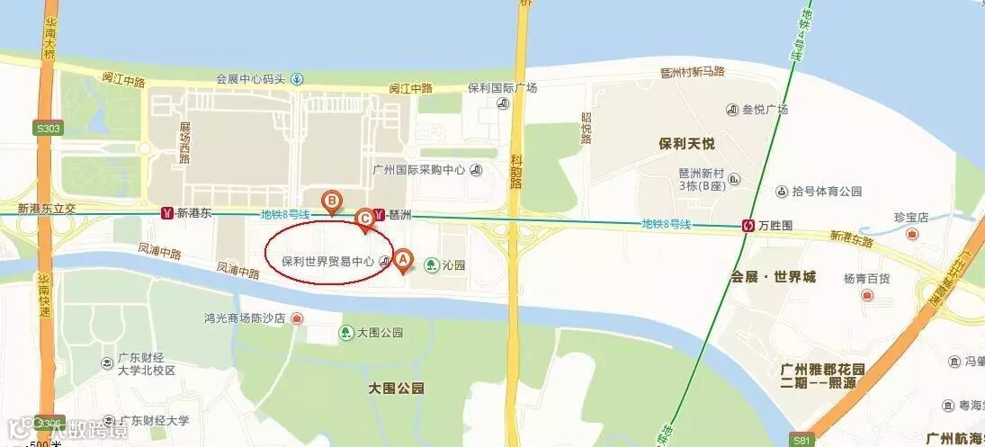 乘坐8号线到琶洲站下车,从C出口出即可到达。