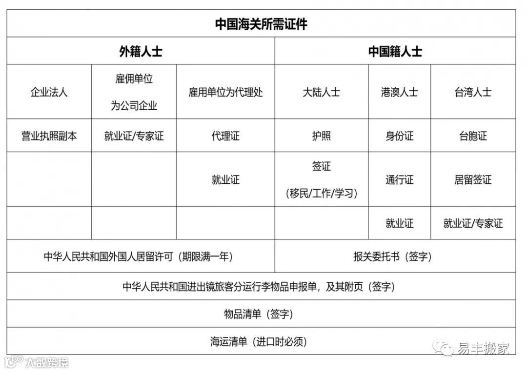 中国海关所需证件