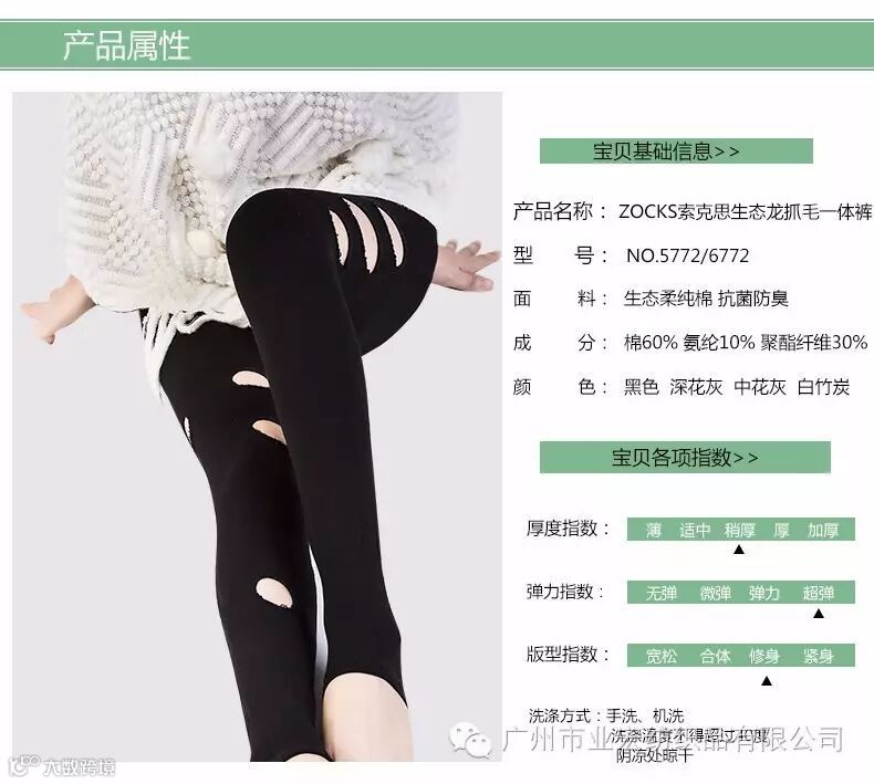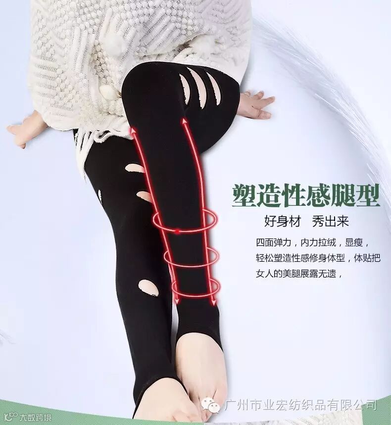 广州市业宏纺织品有限公司产品介绍 2016最新工艺! 2000D龙抓毛加绒款连袜裤!