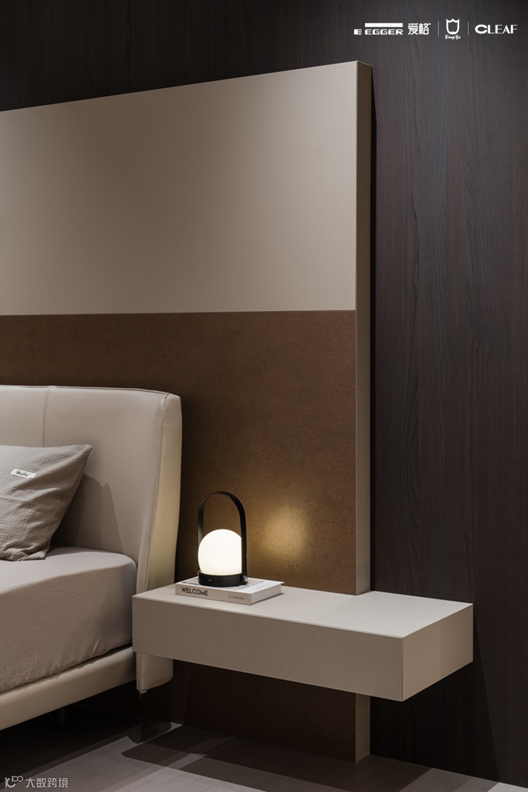 卧室背景墙融合三种材质: