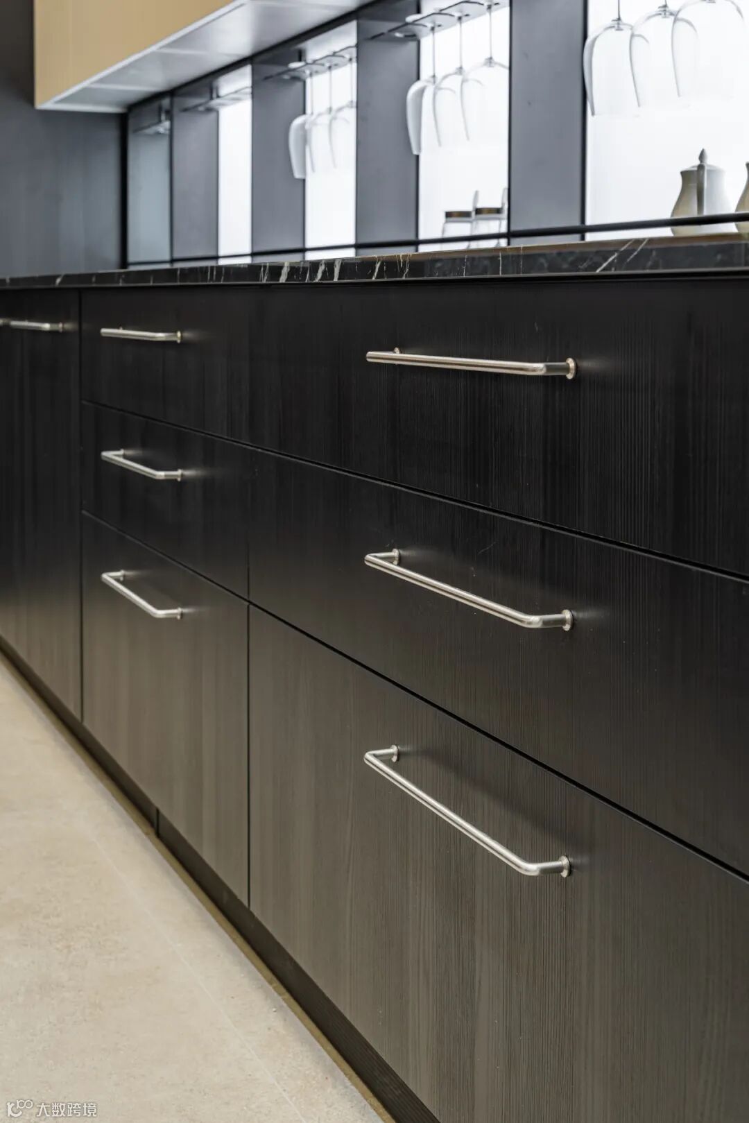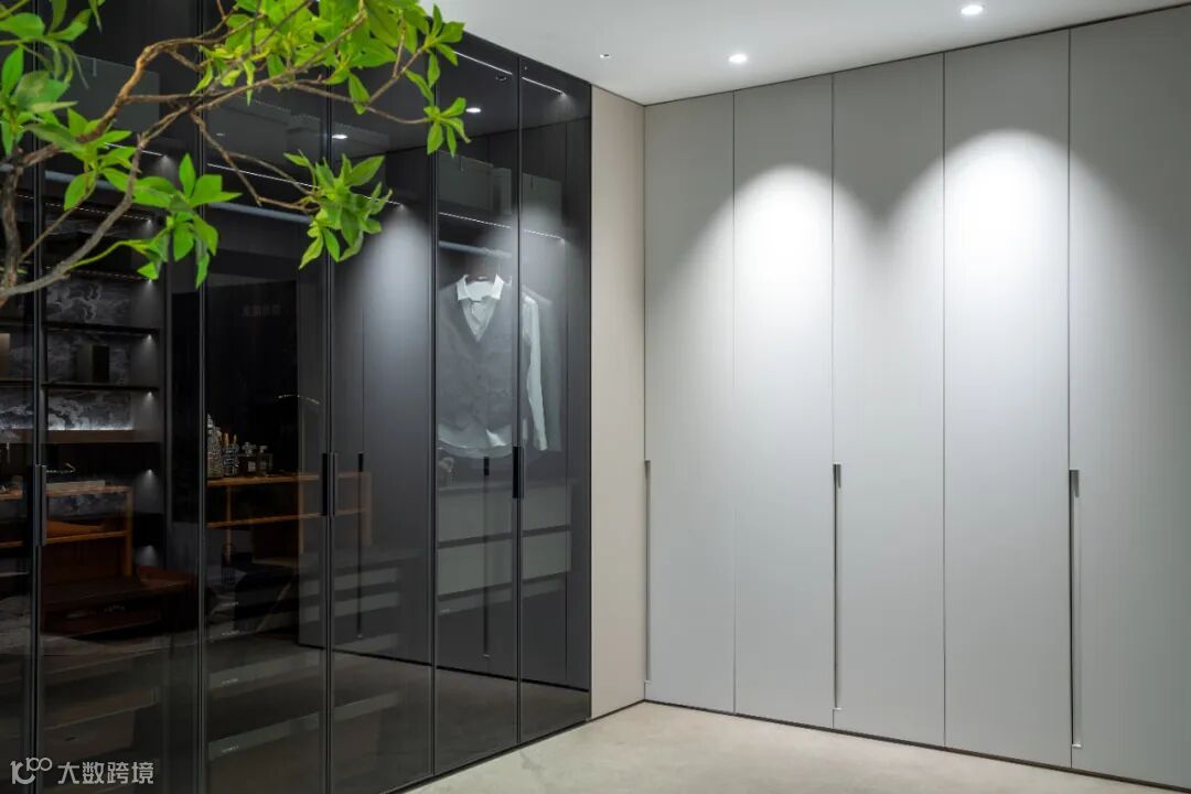 黑色玻璃柜门为整个空间增添了一份现代感和科技感。