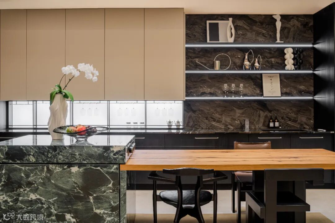 与黑色的开放柜形成经典时尚搭配。