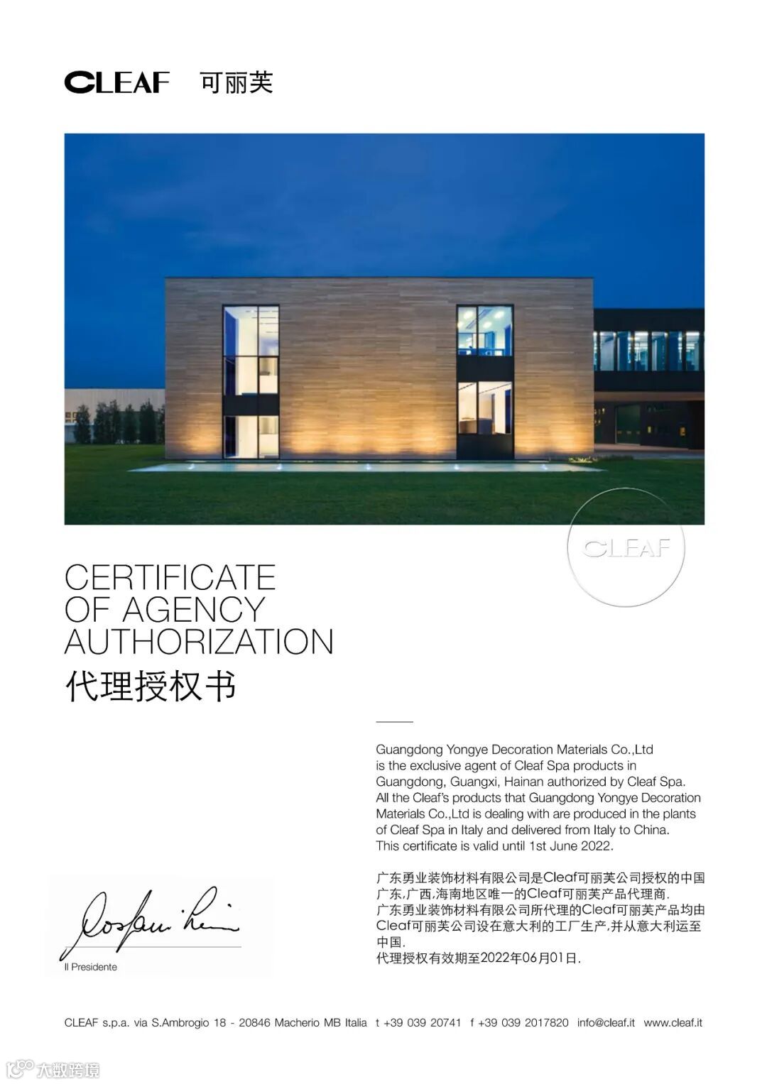 广东勇业装饰材料有限公司一直以“健康、环保、可持续发展”为公司核心理念,专注为市场供应健康环保的装饰材料,致力成为一家全屋定制整体方案提供商。为了给客户提供更多的选择,且更加完善我们的销售及配套服务,广东勇业一直不断开拓进取,2021年5月,成功的获得了Cleaf可丽芙公司的认可,成为Cleaf可丽芙公司授权的中国广东、广西、海南地区唯一Cleaf可丽芙产品代理。