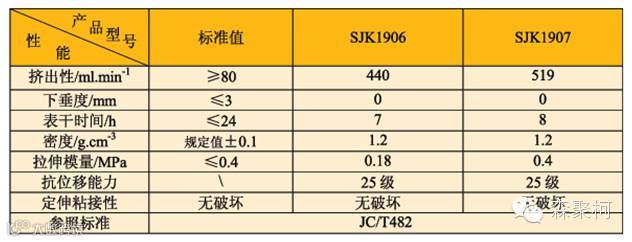 SJK1907是低模量聚氨酯密封胶,延伸率可达800%以上,可用于混凝土、石材等基材的接缝密封,具有良好的粘接性能。