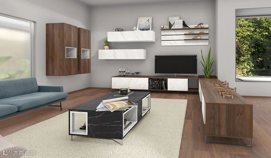 深灰色也是比较百搭的一款花色,与暖色调的木纹花色进行搭配,可以呈现出优雅温馨的空间氛围。