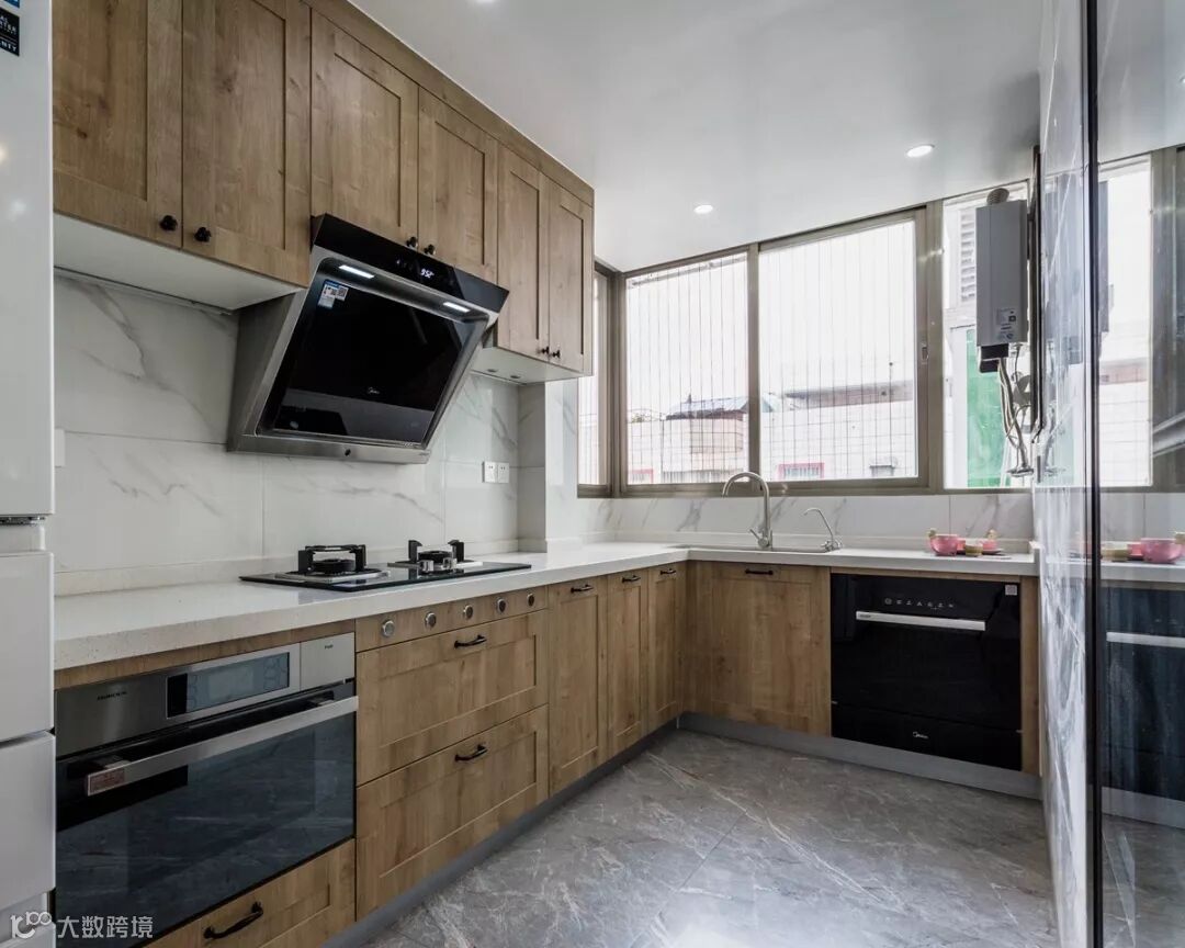 橱柜花色是爱格H3303 ST10自然汉密尔顿橡木,是一款极为真实的橡木花色,具有深色的结疤,同时具有经典的自然色彩。 ST10粗砺深压纹令这种橡木的效果非常自然。