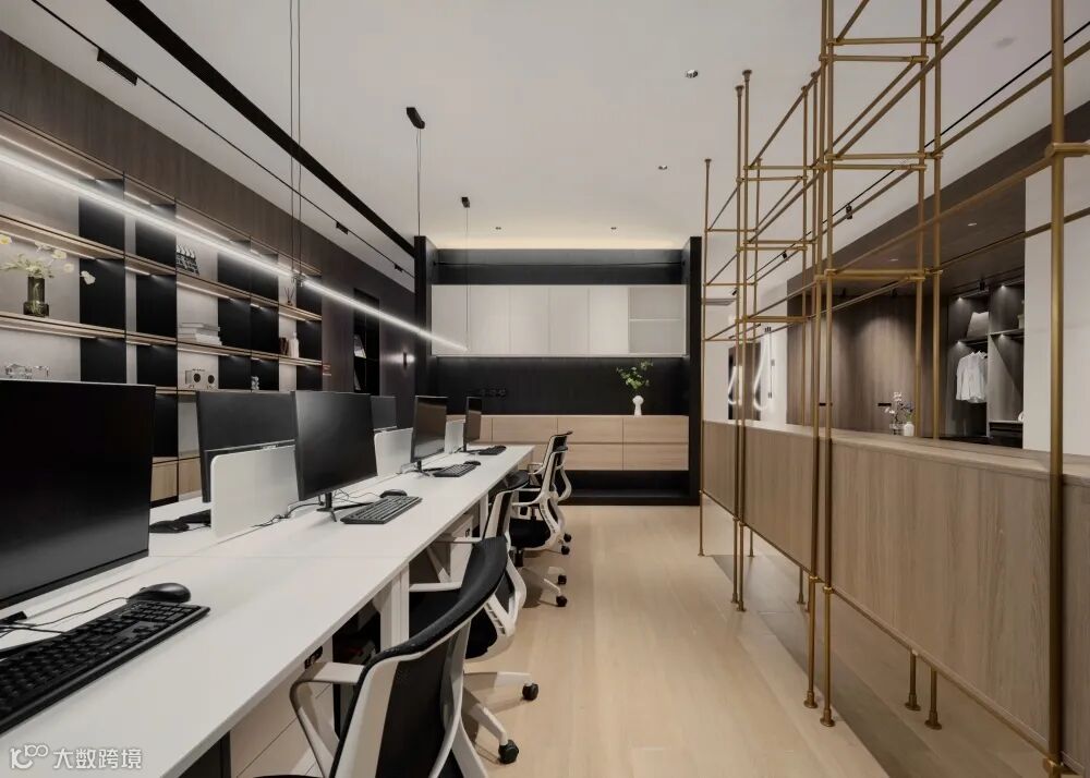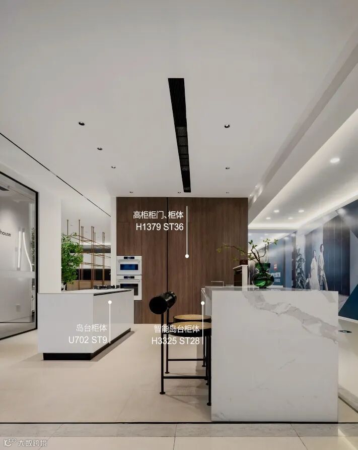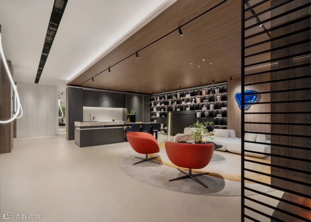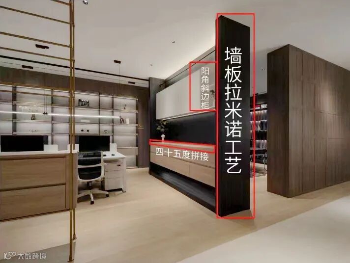 办公区域和样板展示区中间的隔断柜,采用了背板拉米诺工艺、阳角斜边处理工艺和四十五度角拼接三种制造工艺,注重细节,方彰显品质。