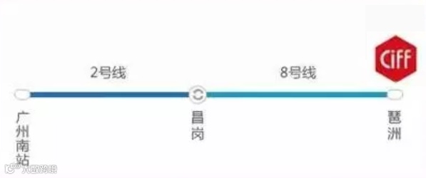 2、地铁:约55分钟,搭乘2号线(嘉和望岗方向)至昌岗站换乘8号线(万胜围方向)至新港东站F出口。