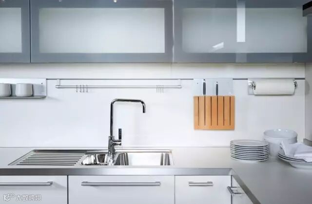 一条直线凹槽,搭配种类繁多的配件,刀具、铲子、调料瓶等能上墙,为操作台留出足够的空间,做饭也变得更加优雅轻松了。