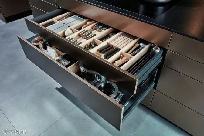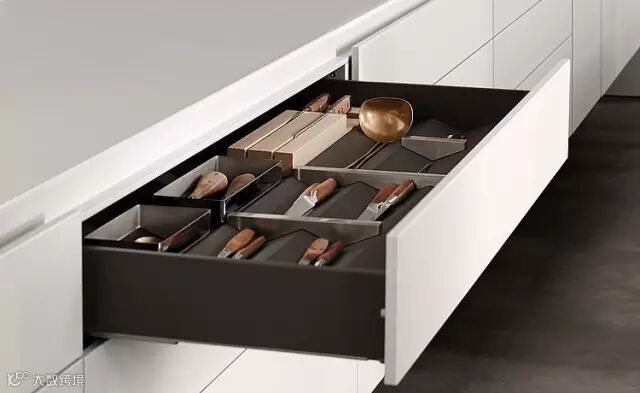 地柜的抽屉内部可以进行自由分割,通过挪动分割块,自定义分区。