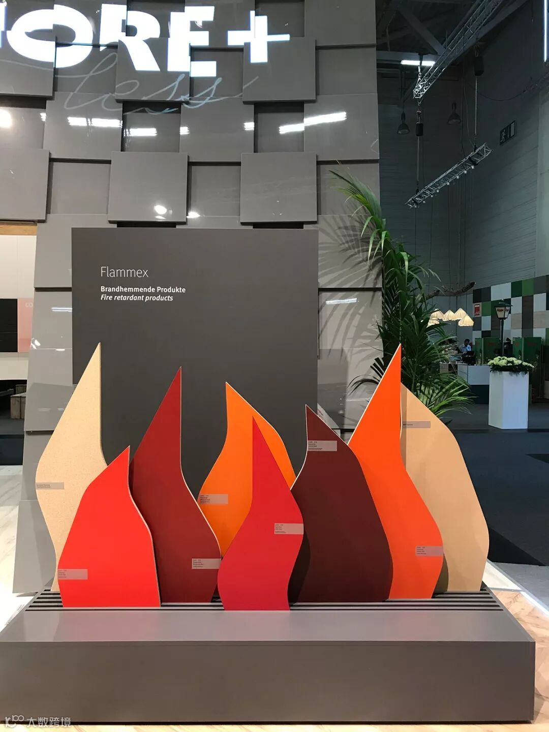 以火苗的形式展示的是爱格防火板产品,让人一看就知道产品的特性及用途,形象又有趣。