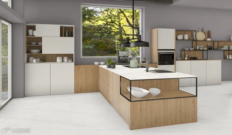 这款花色同样具有XL超大规格,大大减少了花色重复,适合室内空间的大面积使用,比如橱柜、衣柜等定制家居。