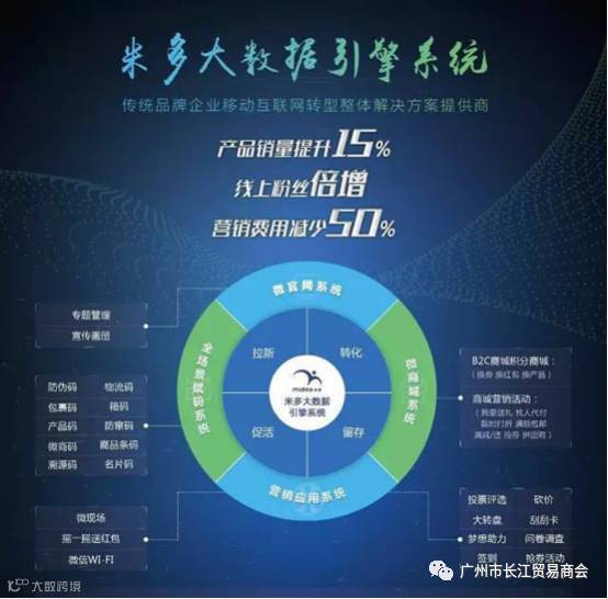 米多大数据引擎系统根据传统企业经营过程中的不同场景以及各场景中的关键人(这里的关键人不仅包含消费者,还包括企业渠道人员、经销商、终端售点等)为中心来设定码的不同功能属性,通过二维码将人和品牌的沟通距离和沟通成本降至最低,同时将各类场景数据以用户的账户体系为中心有效采集至企业的大数据平台,帮助企业解决经营过程中的难点和痛点,助力传统企业在不改变现有销售渠道的情况下,真正实现“销量提升、粉丝倍增、费用减半”。