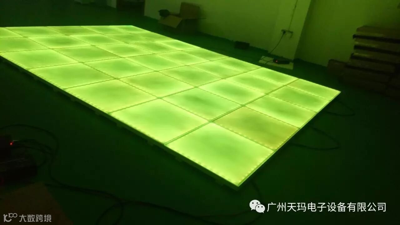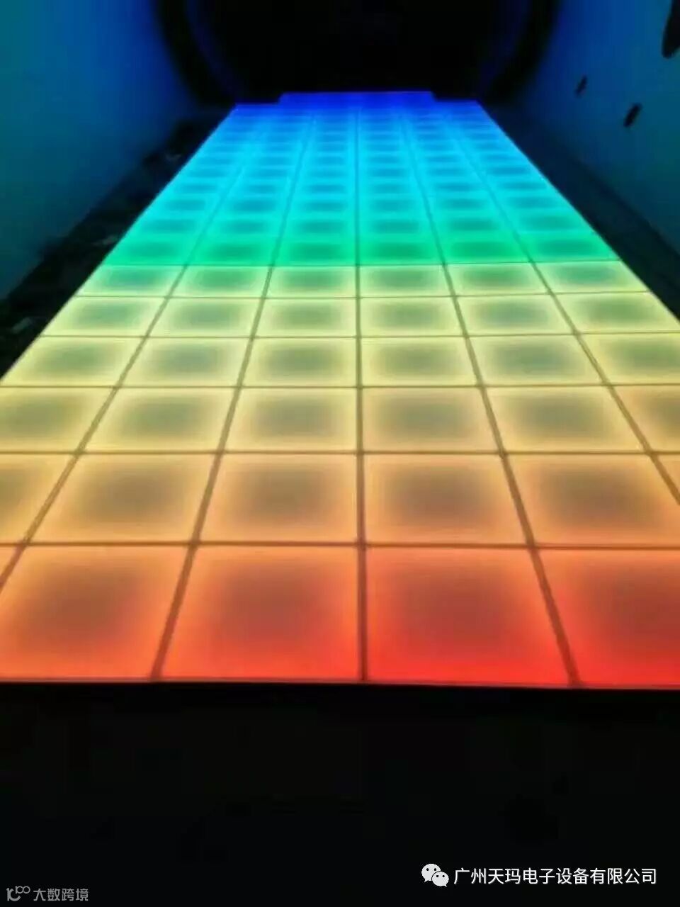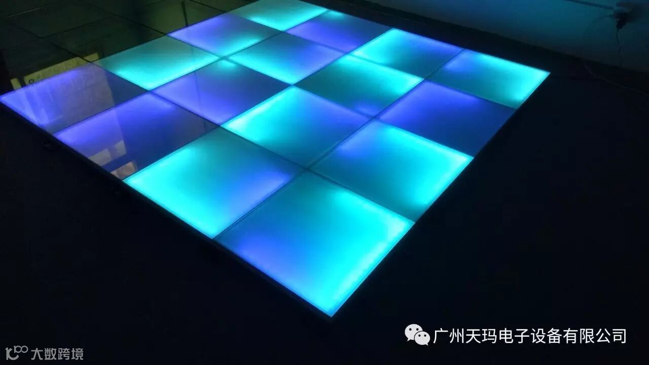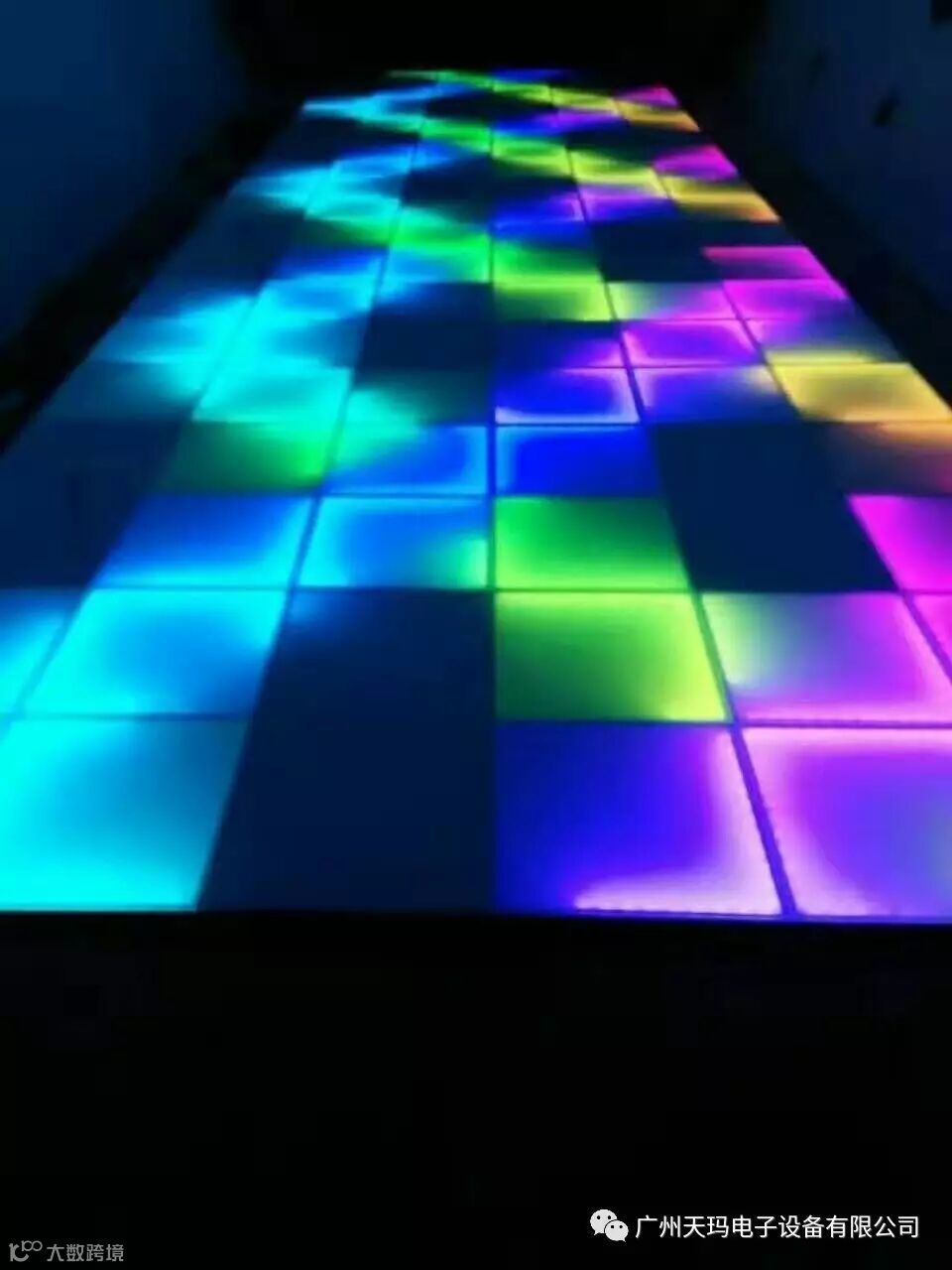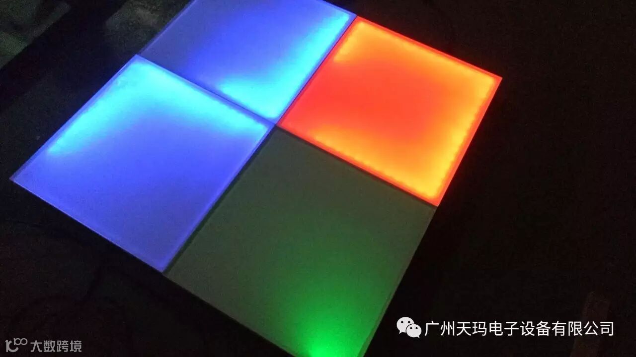 6. Water proof:IP55 7. Housing:Alluminium alloy 8. Surface Board:10mm Tempered glass 9.NW:9kg. 10.GW:9.5kg. 11.Packing Size: 560*560*180mm(Carton 1 in 1) 12.Base design:Portable handle + Bottom skid resistance+ hidden outlet cables. 13. Feature: RGB gradual change, Jump effect,Rotation effect, Rendering effect, Chase effect, Auto run, Sounds active,Type word